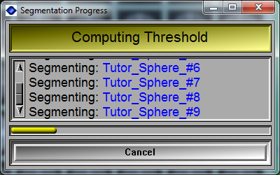 This window is used when the program perform calculation in separate threads. It enable the threads to display their progress. Please note that the progress window can not be used to display progress of a computation done in the main program thread.