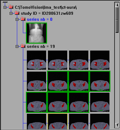 For this you can: oClick on the icon of the desired study to select all the files in all the series of that study. oClick on the icon of a series to select only the files of that series. o"Ctrl" click on a the icon of a study or a series or a specific file add it or remove it from the selection. oYou can also use "Shift" click to select all the files between the previous and the current click. Click on the first file, then while pressing "Shift" and click on the last file. All the files from the first to the last will be selected. oYou can also use the mouse to drag a selection box. All the files touching the box will be selected.