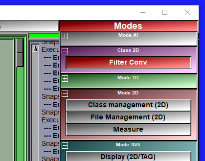 Clicking on one of the filter buttons will select the corresponding filter. The available filters are: Median, Mean, Gaussian, LoG, Sharpen, Laplace, Roberts and Sobel. A brief description of each filter, with some image examples, is located above.
