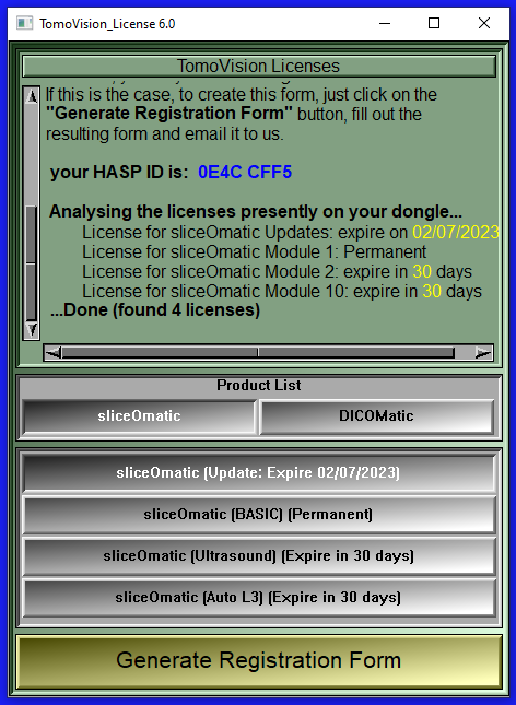 You do not usually need to open it. It is open automatically for you when you drag&drop a license on the sliceO program. However, if you have problems with your licenses and at some point we ask you for your "Registration Form", this is the program used to create it.