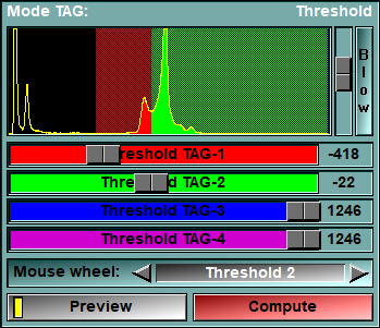 Toggle the preview mode. When on, the indicator on the button light up and the TAG displayed in the 2D windows will reflect the threshold selection.